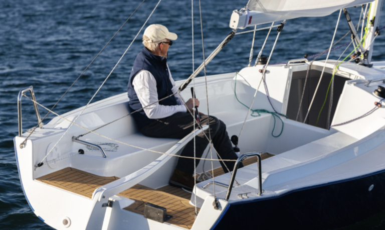 A. Yes! It’s an enjoyable boat with an optimized deck layout for simplicity and efficiency, including an end-boom mainsheet system and bridle. No traveler to trip over! The cockpit is also self-bailing.