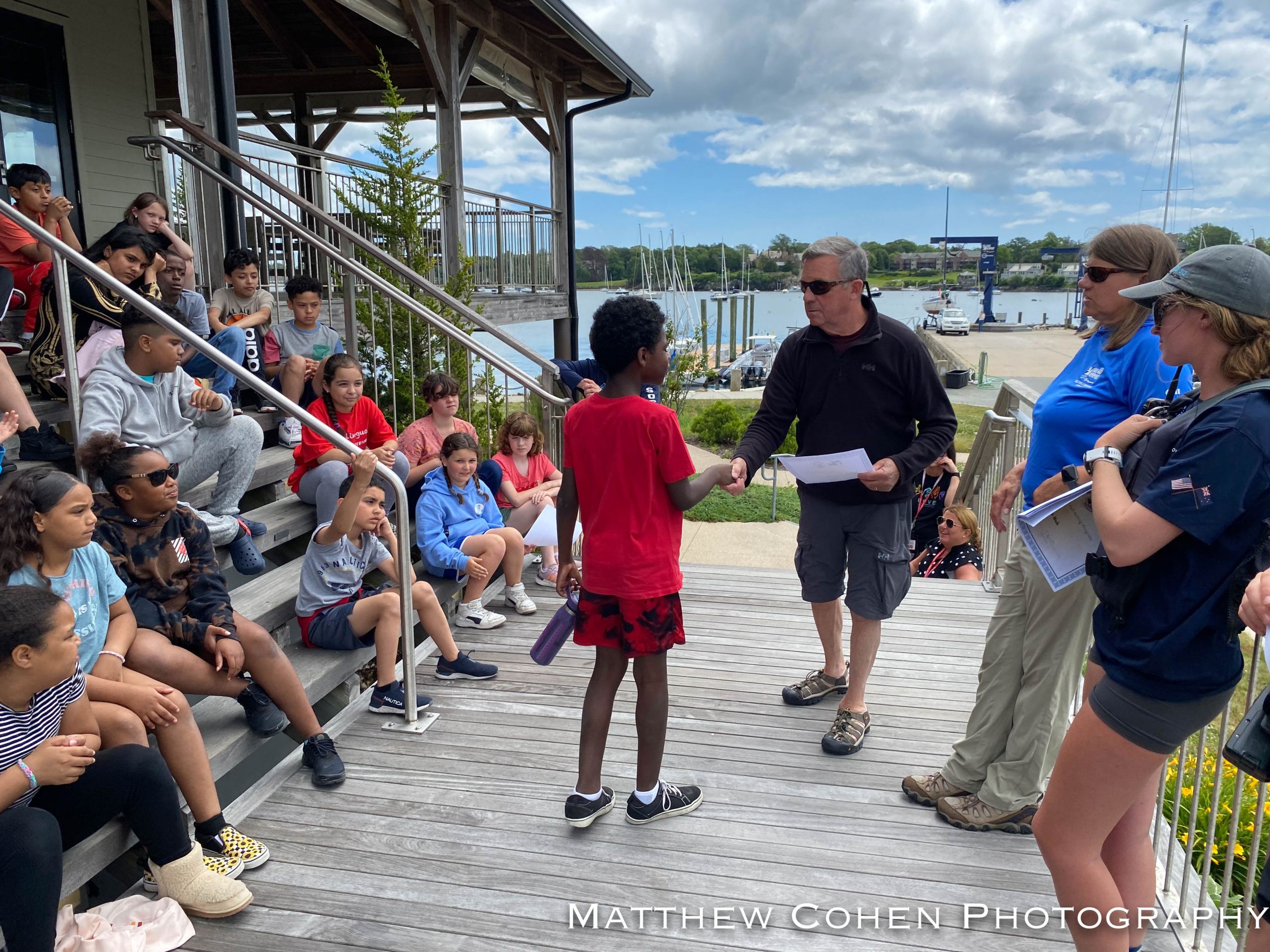 Starting in 2017, Sail Newport partnered with the Newport Public School system to offer the Pell Elementary School Science and Sailing Program to all Newport 4th graders. This program allows students to learn about different STEM topics such as weather, geography, marine life, ocean health and more.